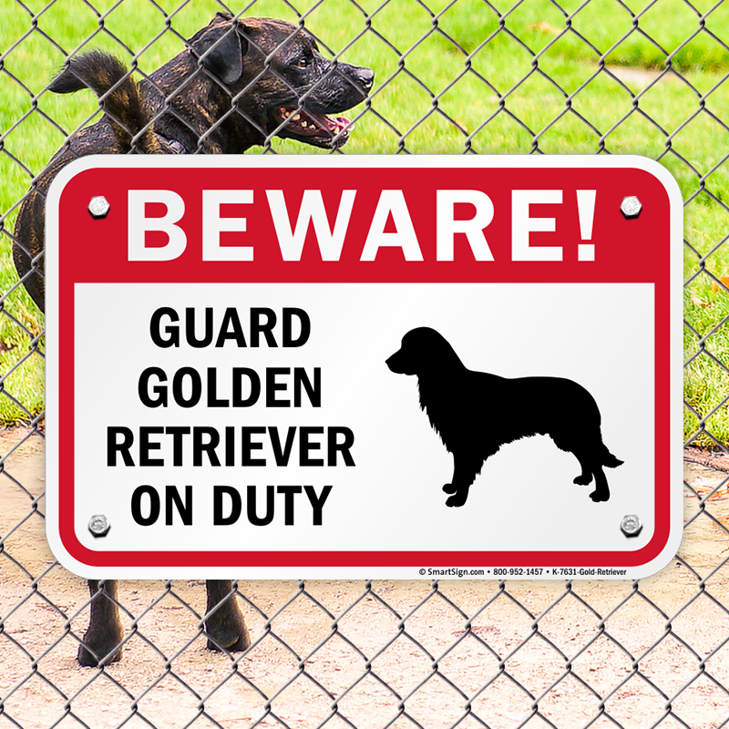 Beware Of Dog Breed Sign: Guard Golden Retriever On Duty Sign K-7631-GOLD-RETRIEVER