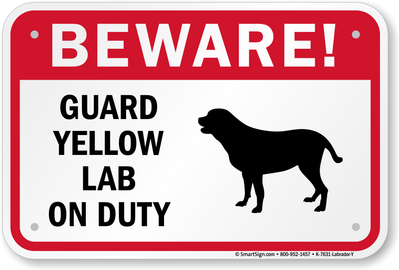 Beware Of Dog Breed Sign: Guard Yellow Lab On Duty Sign K-7631-LABRADOR-Y