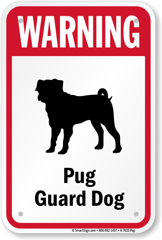 Warning Dog Breed Sign: Pug Guard Dog Sign K-7632-PUG
