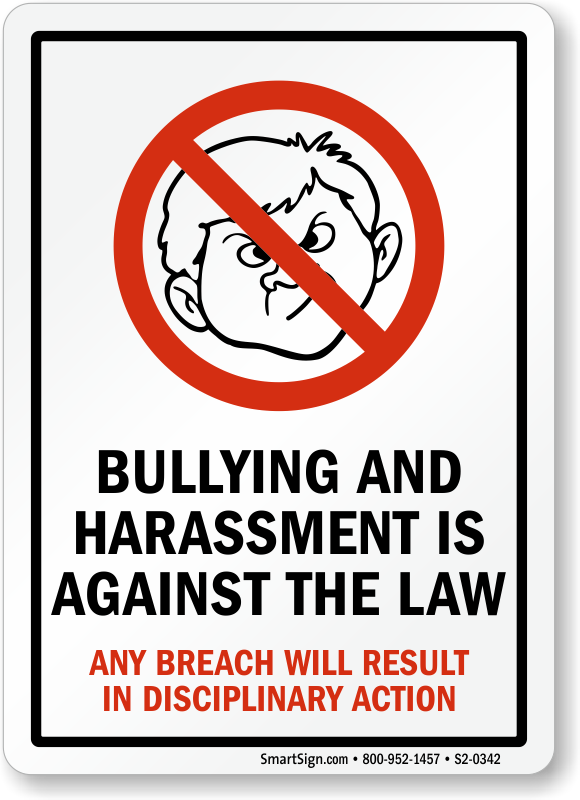 Use your sense, bullying is an offense! Use this no bullies sign to let kids know bullying is against the law.