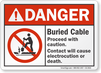 ANSI Danger Sign: Buried Cable, Proceed With Caution, Contact Will Cause Electrocution Or Death S2-2633