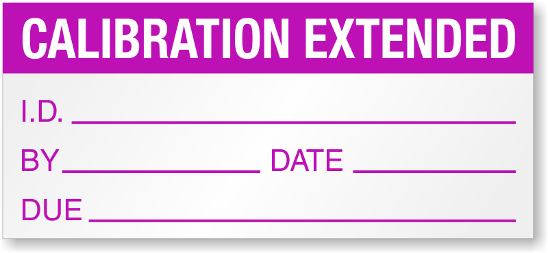 Indicate the equipment or instruments that have an extended calibration. Use this label and fill in other details along with the next due date of calibration.