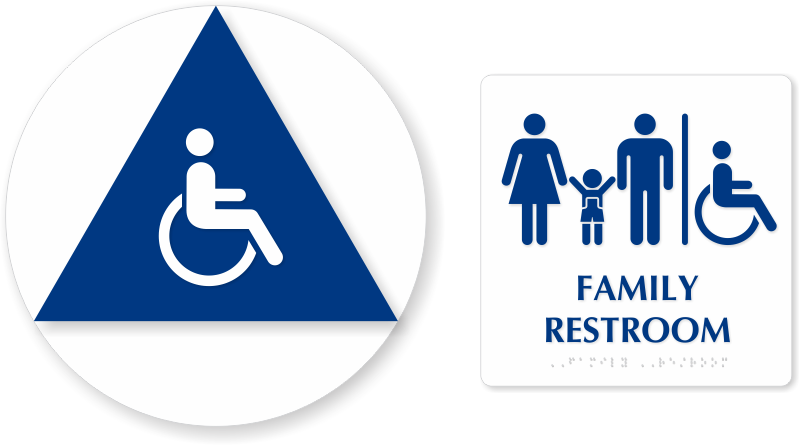 California Wall And Door Restroom Sign Kit: ISA And Family Pictograms, White And Blue SE-1829 Learn More...
