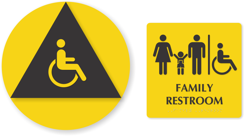 California Wall And Door Restroom Sign Kit: ISA Wheelchair And Family Pictograms, Yellow SE-1905 Learn More...