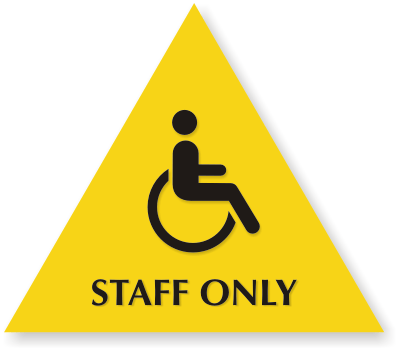California Men's ADA Restroom Sign: Staff Only With Male Accessible Pictogram, Yellow Triangle SE-1882 Learn More...