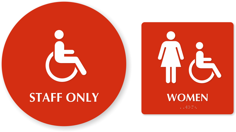 California Wall And Door ADA Staff Women Restroom Sign Kit: Accessible Staff Only And Women Pictogram - Red SE-1873 Learn More...