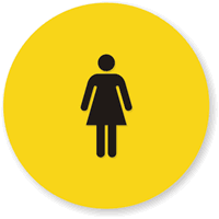 California Women's Restroom Sign, 12in. circle: Women With Women Pictogram, Yellow And Black SE-1876 Learn More...