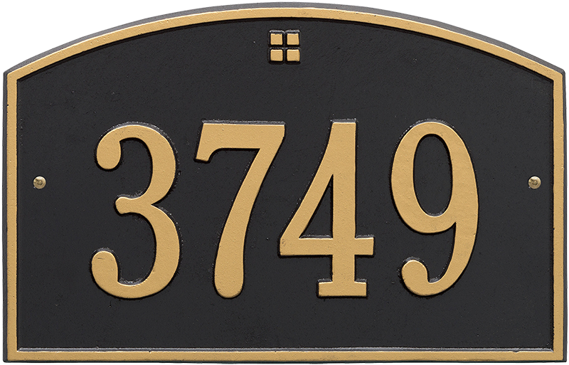 The Whitehall Products Cape Charles Standard Wall Address Plaque (One Line) displays your address in style. The address plaque is made from rust free cast aluminum providing excellent quality. A classy emblem adds distinction and charm to the top of this house number sign.