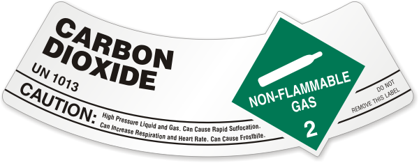 Cylinder Shoulder Label For Class 2 Non-Flammable Gas: Carbon Dioxide - Caution High Pressure Liquid And Gas Can Cause Rapid Suffocation Label - UN 1013 LB-1974
