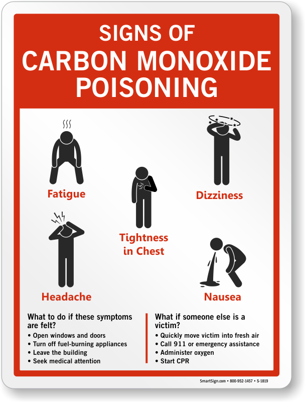 Chemical Hazard Sign: Signs Of Carbon Monoxide Poisoning - Fatigue, Dizziness, Headache, Nausea, Tightness In Chest