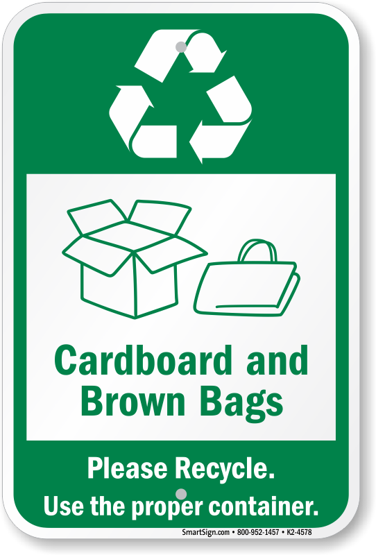 Recycling Sign: Cardboard And Brown Bags - Please Recycle. Use The Proper Container. K2-4578