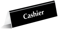 Give your cashier a special mention and help visitors find the cashier's desk easily with this bold table top tent sign.