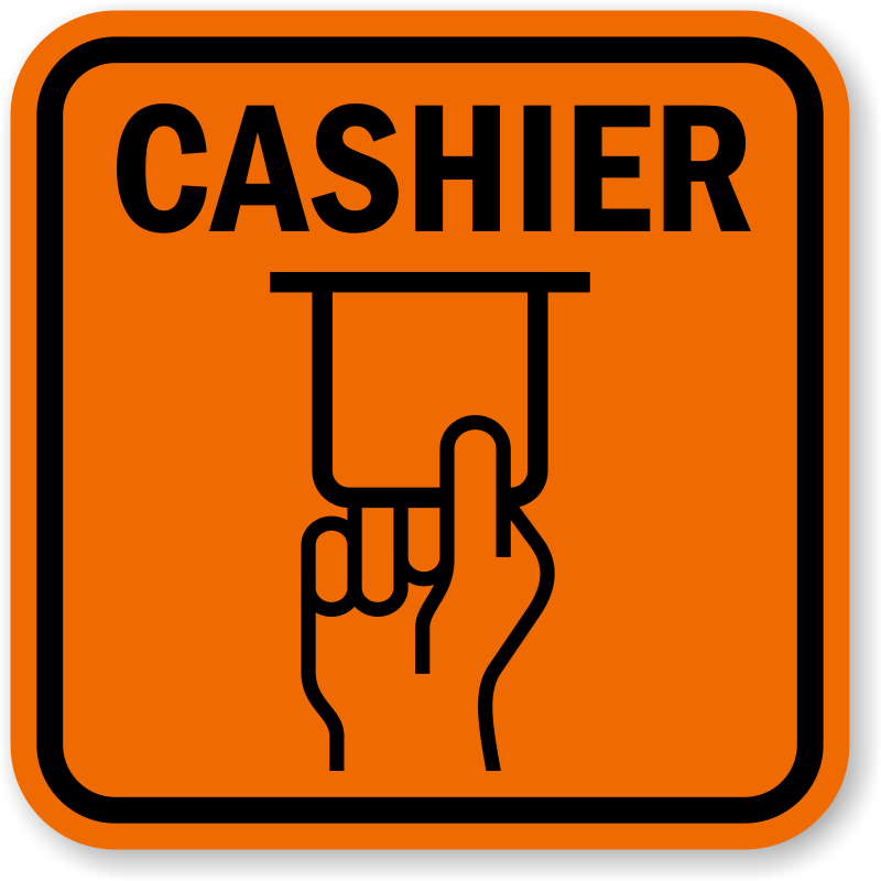 Use our Cashier Sign in banks, retail stores, hospitals, restaurants, and other facilities. Our bold sign with the cashier symbol can be easily spotted from a distance.