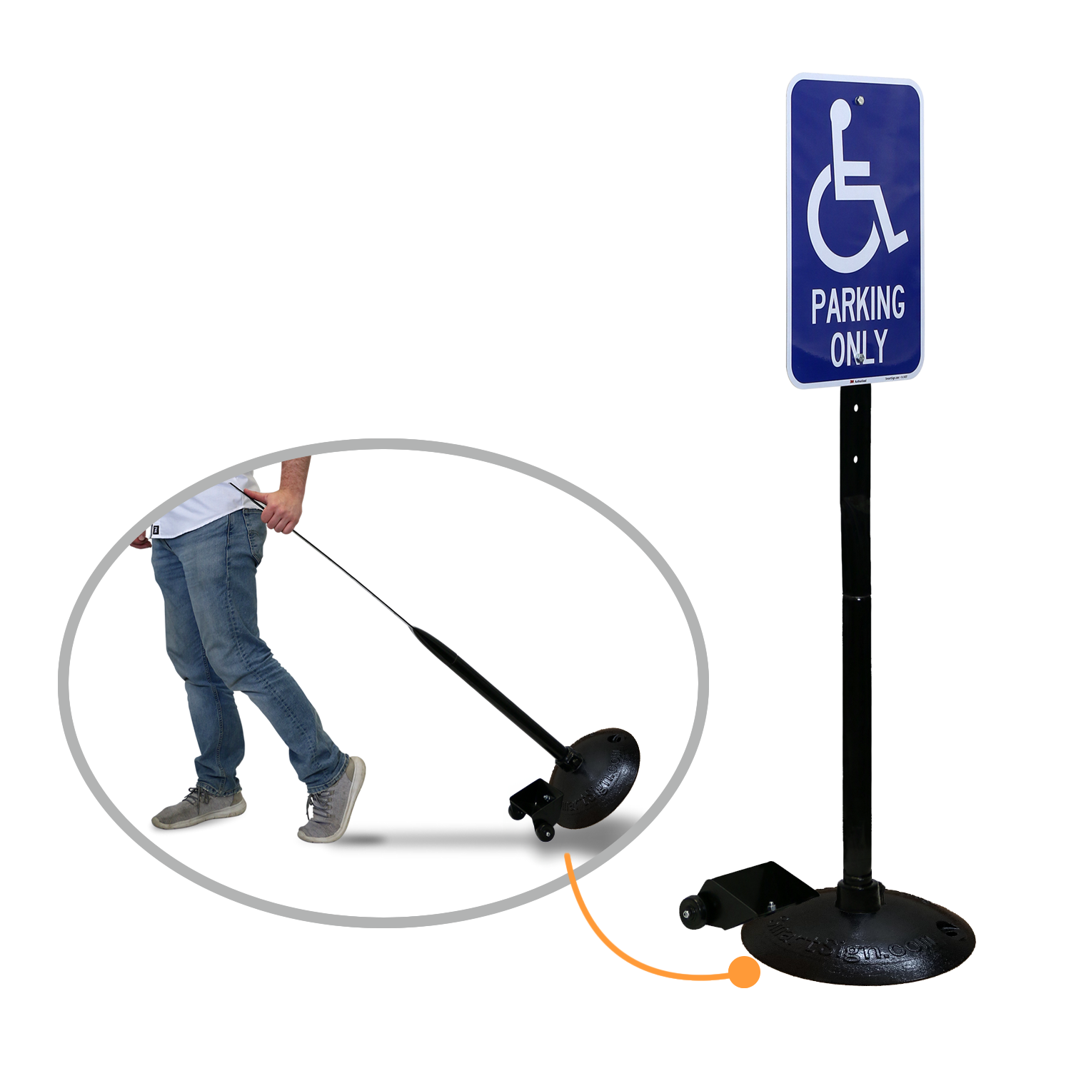 - Durable, portable, cast iron, 14-inch diameter base works in all kinds of outdoor conditions. Put your sign where will have the most impact.