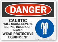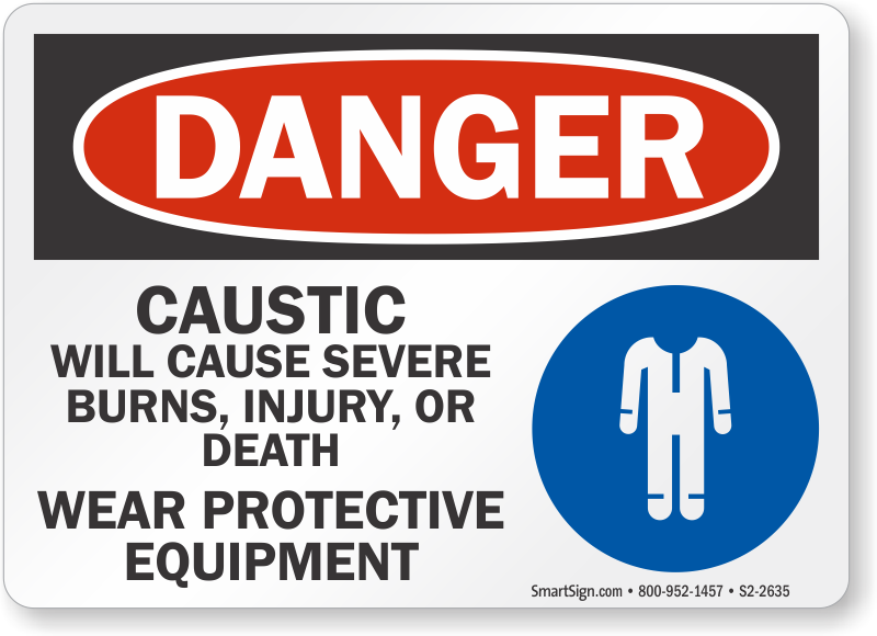 OSHA Danger Sign: Caustic Will Cause Severe Burns, Injury, Or Death. Wear Protective Equipment S2-2635