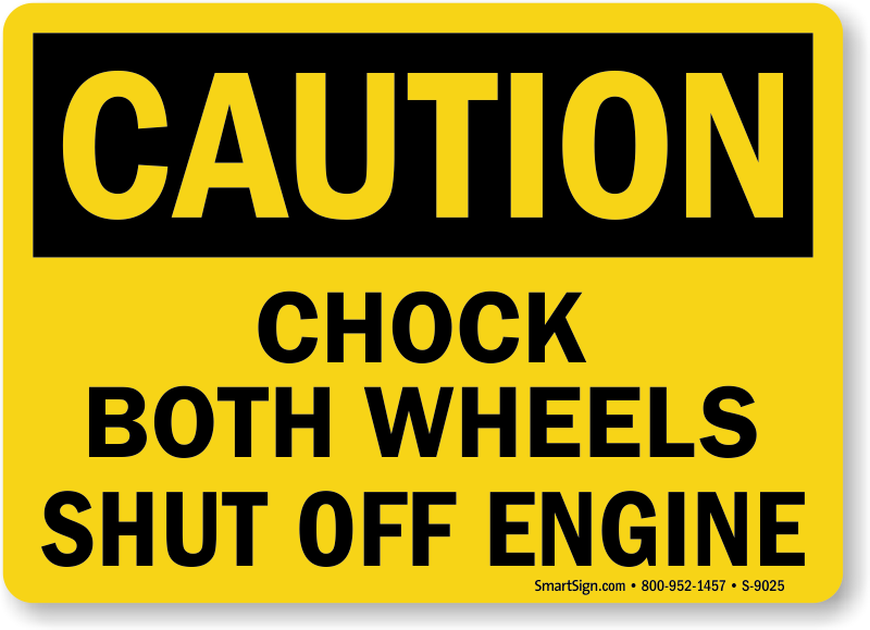 When you aren't there to personally oversee your drivers, this sign provides a checklist of safe and proper parking procedures. With this sign, drivers will be reminded to chock both wheels and shut off the engine.