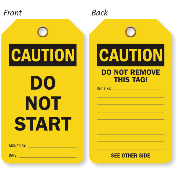 Don't let an information gap turn into a fatal accident - simply tag machines with this Double Sided OSHA Caution Safety Tag while servicing or maintenance operation is going on.