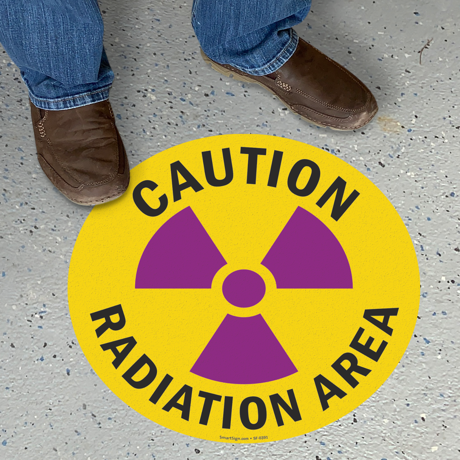 It is impossible to miss out a bright yellow, large floor sign. Warn workers that they are near a radiation area by placing an anti-skid caution sign in the vicinity.