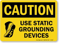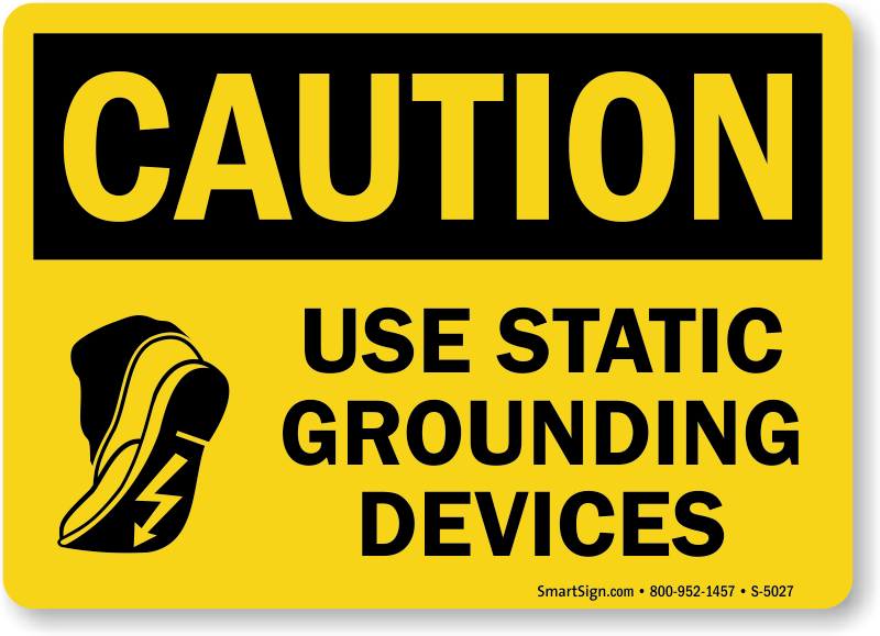 Prevent accidents due to potential hazards. Ask workers to use static grounding devices in order to prevent electrical accidents by posting this OSHA Caution Static ESD sign.