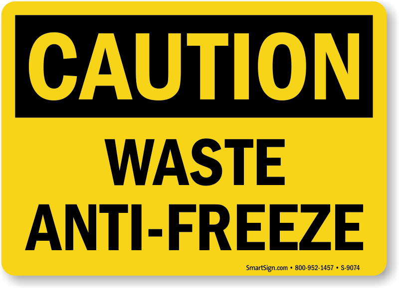 Waste anti-freeze may contain lead, cadmium, or chromium, making it hazardous. Post this OSHA-compliant sign to caution people in the area.