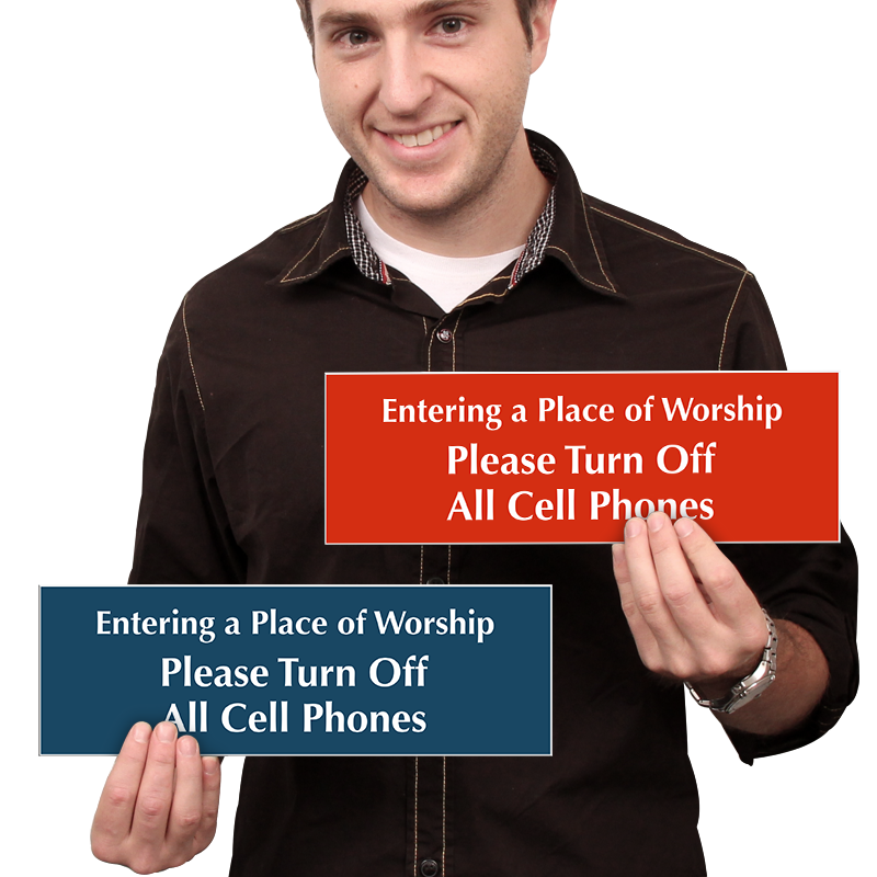 Select-a-Color Engraved Sign: Entering A Place of Worship Please Turn Off All Cell Phones SE-2554