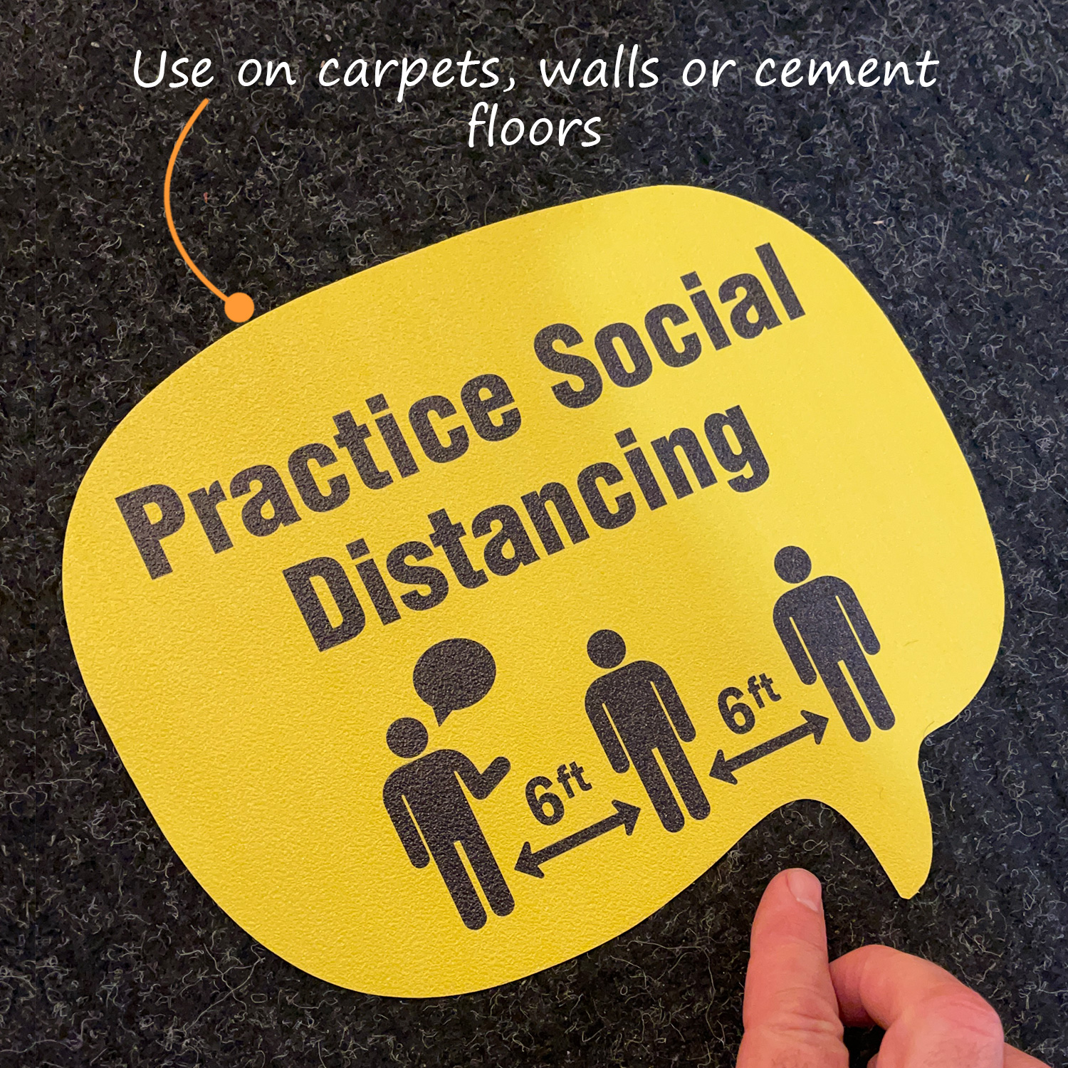 Add character to your social distancing communication with this conspicuous floor sign. It is easy to apply and hard to miss.