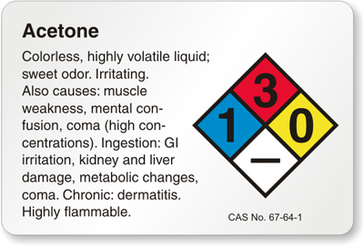 Emphasize on safety and adhere to hazardous substance regulations with NFPA Acetone label with details.