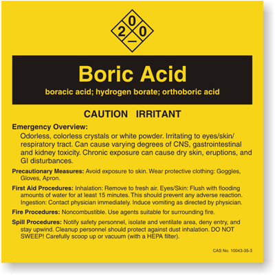 A Boric Acid chemical label will help prevent an avoidable and unnecessary accident. Nothing works better to increase safety than a Boric Acid label.
