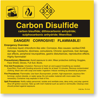 A Carbon Disulfide chemical label will help prevent an avoidable and unnecessary accident. Nothing works better to increase safety than a Carbon Disulfide label.