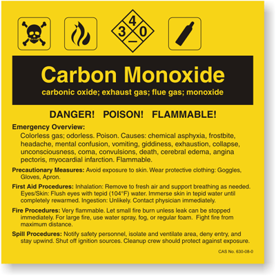A Carbon Monoxide chemical label will help prevent an avoidable and unnecessary accident. Nothing works better to increase safety than a Carbon Monoxide label.