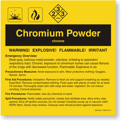A Chromium Powder chemical label will help prevent an avoidable and unnecessary accident. Nothing works better to increase safety than a Chromium Powder label.