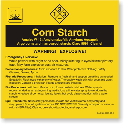 A Corn Starch chemical label will help prevent an avoidable and unnecessary accident. Nothing works better to increase safety than a Corn Starch label.