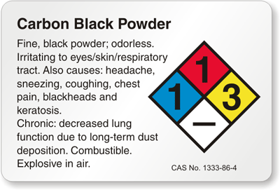 Display all the details along with side-effects of Carbon Black Powder through this effective NFPA label. Safeguard your employees and follow regulations.
