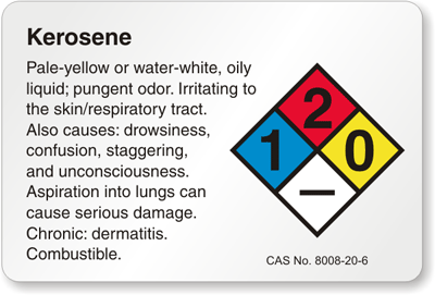 Kerosene NFPA label helps you display all the characteristics and effects of exposure in order to facilitate proper diagnosis and emergency treatment. Use of effective chemical labels decrease the risk of injuries and encourage safety.
