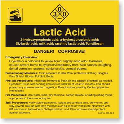 A Lactic Acid chemical label will help prevent an avoidable and unnecessary accident. Nothing works better to increase safety than a Lactic Acid label.