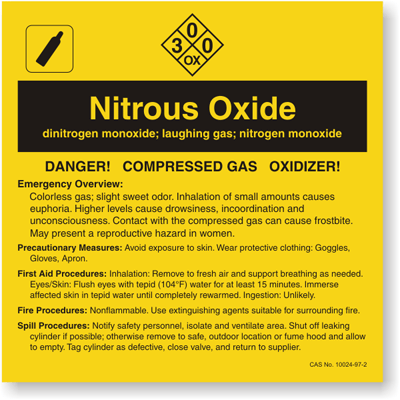 A Nitrous Oxide chemical label will help prevent an avoidable and unnecessary accident. Nothing works better to increase safety than a Nitrous Oxide label.