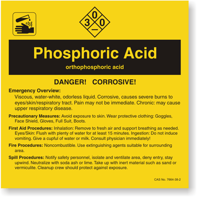 A Phosphoric Acid chemical label will help prevent an avoidable and unnecessary accident. Nothing works better to increase safety than a Phosphoric Acid label.
