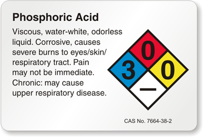 Make important safety details your first priority. Mark Phosphoric Acid with bright NFPA compliant labels that alert & inform workers of possible hazards.