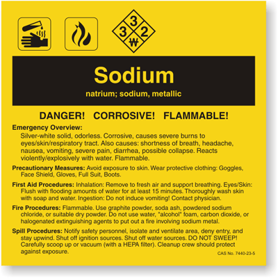 A Sodium chemical label will help prevent an avoidable and unnecessary accident. Nothing works better to increase safety than a Sodium label.