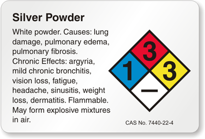 Warn everyone of the nature and side-effects of Silver Powder exposure at work. Emphasize on safety and caution.
