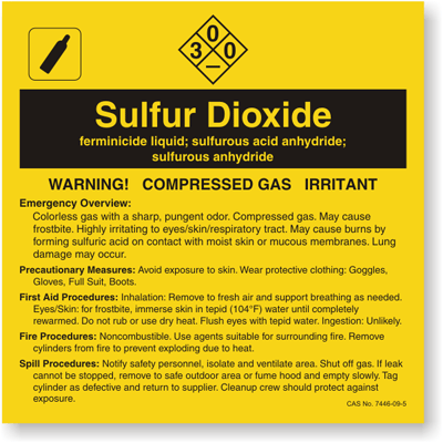 A Sulfur Dioxide chemical label will help prevent an avoidable and unnecessary accident. Nothing works better to increase safety than a Sulfur Dioxide label.