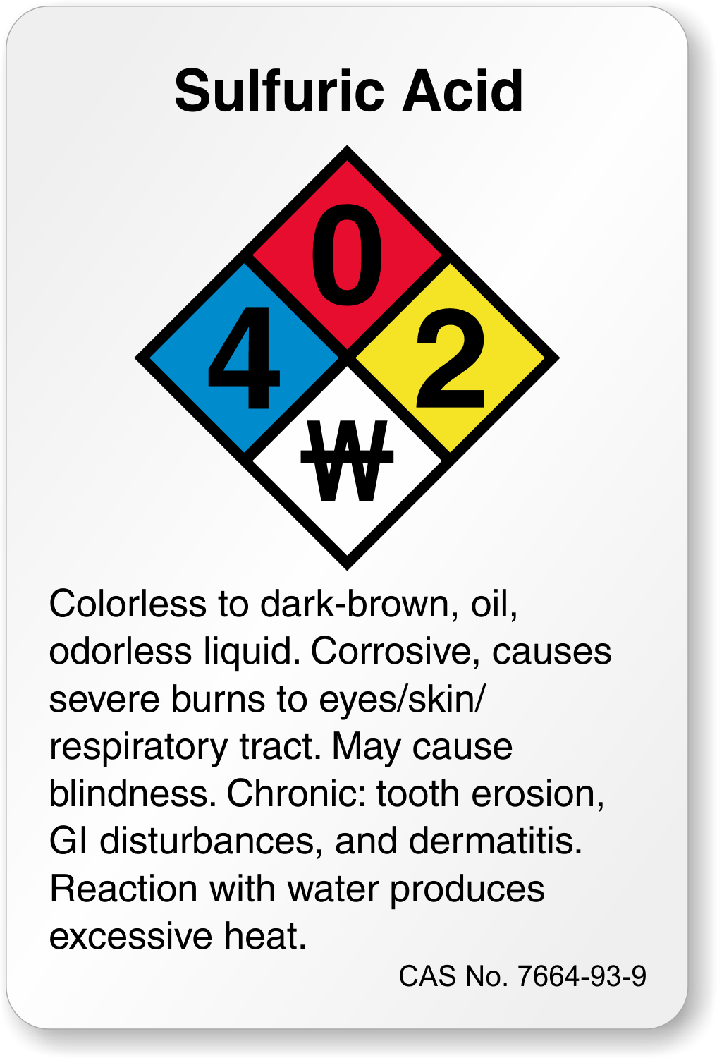 Sulfuric Acid Label: NFPA Design LB-1591-120