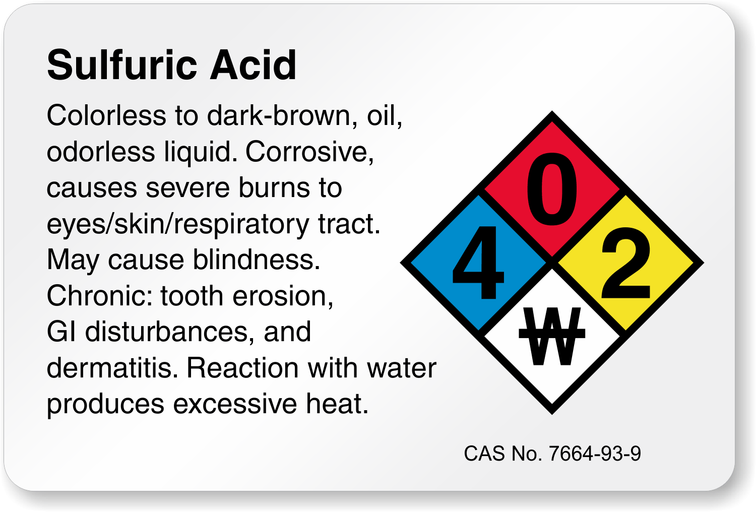 Your first priority at work is safety! Mark hazardous Sulfuric Acid chemical with our informative labels.