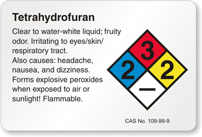 Tetrahydrofuran Chemical Label: NFPA Design LB-1592-122