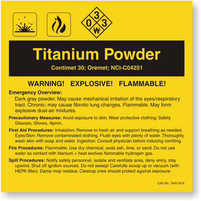 A Titanium Powder chemical label will help prevent an avoidable and unnecessary accident. Nothing works better to increase safety than a Titanium Powder label.