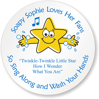 How do you get your kids to wash their hands for a good 20 seconds? Place this sticker near the bathroom sink so children can sing along to a song while washing their hands and avoid getting sick this flu season.