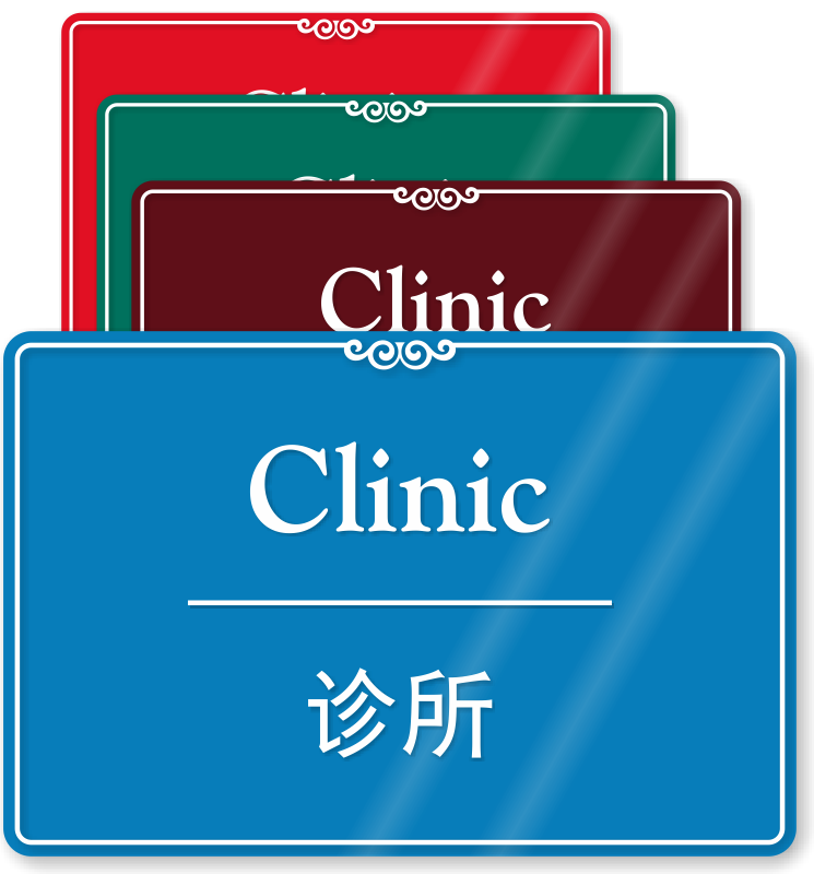Mark the Clinic for patients and visitors to identify it immediately. This Chinese/English Bilingual Wall sign communicates with a wider audience.