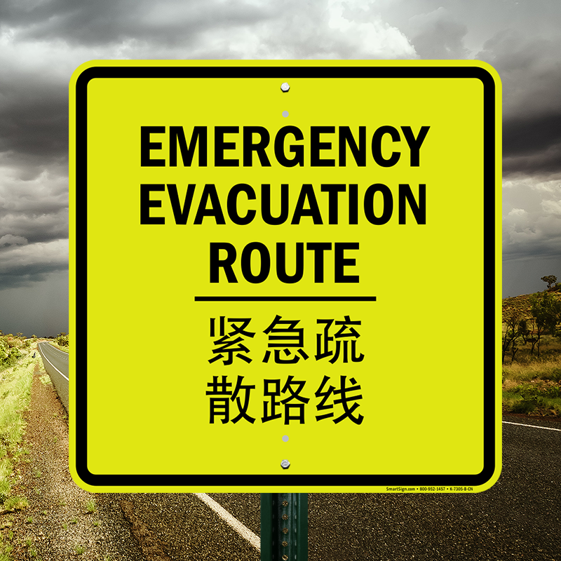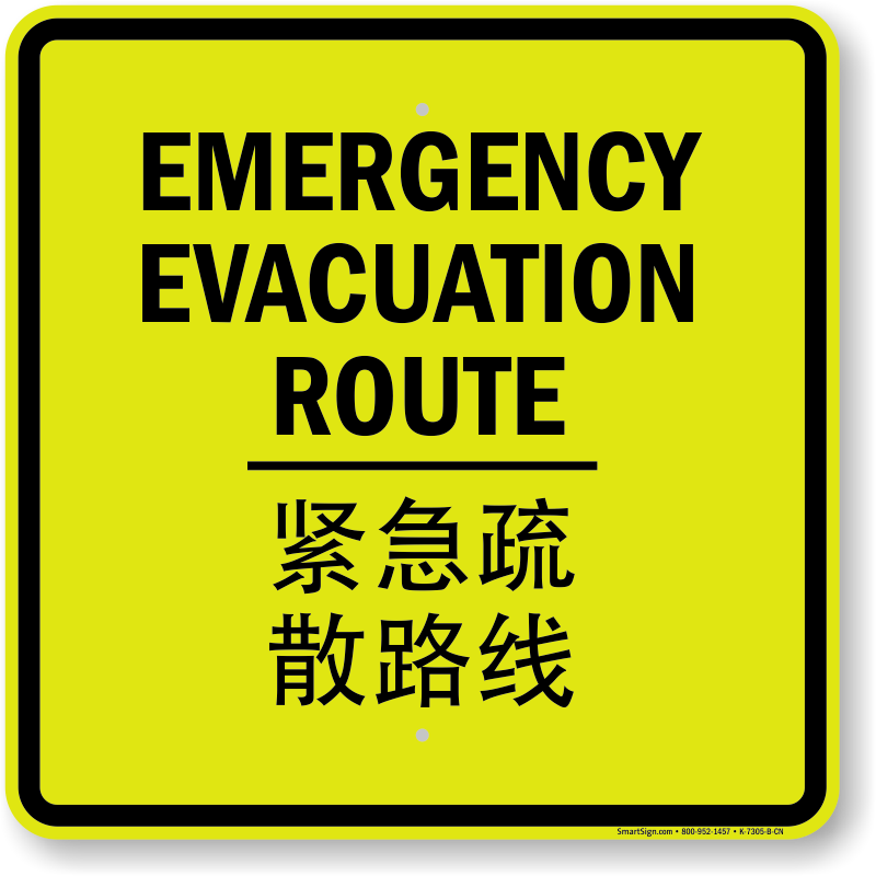 Chinese Bilingual Fire Drill Sign: Emergency Evacuation Route (Chinese + English) K-7305-B-CN Learn More...