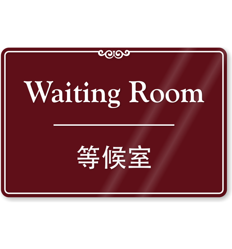 Facilitate your visitors to locate the waiting room with convenience. Display this sign that communicates in English and Chinese.