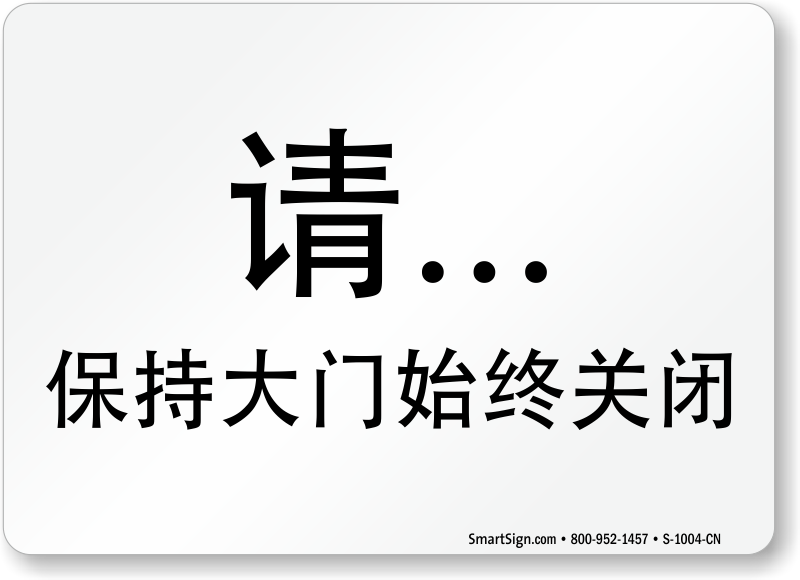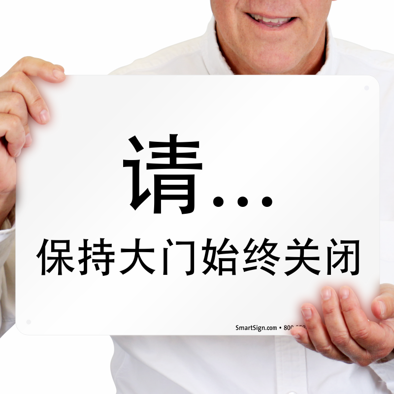Protect your privacy and security by instructing the building occupants to keep the door closed at all times. This Door Gate sign in Chinese will give a reminder every time one uses the door.
